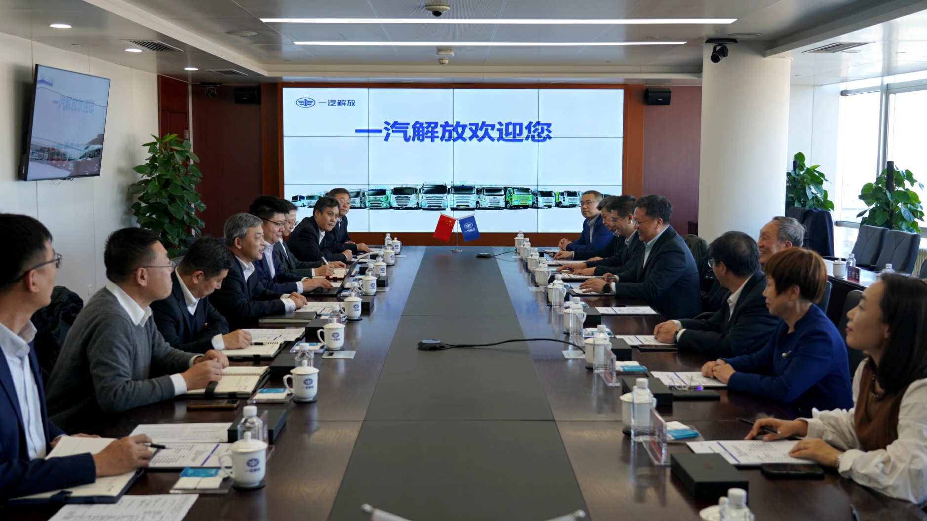 一汽解放汽车有限公司董事长、党委书记吴碧磊首先对冰球突破mg正规官网领导、老师的来访表示热烈欢迎。他介绍了一汽解放品牌战略、辉煌历程、产品布局、企业布局、技术研发和营销采购,表示一汽解放所构建的从前瞻技术、发动机、变速器、车桥到整车的完整自主研发体系得到了学院的大力支持,希望未来通过双方的深度交流,搭建校企合作平台,实现资源共享与优势互补,在人才培养、科学研究等方面取得更大的进步。